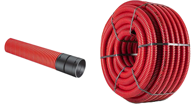 U ponudi držimo rebraste dvoslojne cijevi za kabelsku zaštitu u bojama žuta, plava, zelena i crvena.